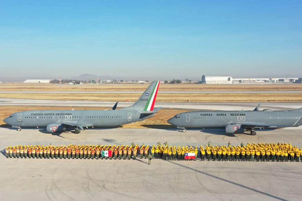 La mañana de este 4 de marzo, arribaron a la Base Aérea Militar No. 1 “Santa Lucía”, los dos Boeing B737 de la Fuerza Aérea Mexicana que trasladaron al personal de la Delegación de Ayuda Humanitaria que participó en la sofocación de los incendios forestales en Chile.